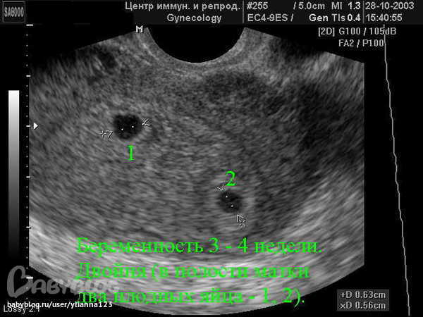 вижу 1 плодное яйцо...вот как двойни выглядят(1 фото 4 недели)(второе 6 недель)