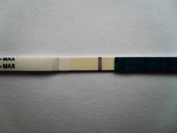 Одна я наверное увидела призрак призрака ,тонкую полосочку ....но возможно это реагент .Повторите через день-два тест .Удачи вам.