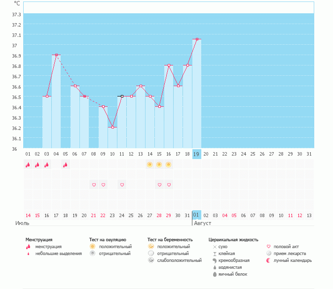 Базальная температура, ТТ, графики БТЯ первый месяц здесь строю график базальной температуры. Сегодня 19 ДЦ, овуляция была и по ощущениям, и по тестам, и по температуре на 15 ДЦ. Но на графике овуляции почему то нет.....???????????????
