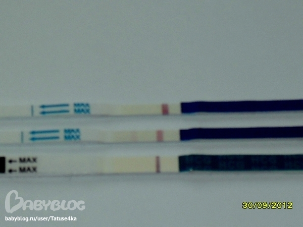 Ждем дня Х (Признаки беременности / Тесты)После выкидыша в июне месяце цикл ни как не восстановится и составляет 30-35 дней,так вот в июле М были по графику,в августе тоже а вот в сентябре всё никак,должны были прийти с 25-29 сентября,но их нет.На 30ДЦ (25.09) была (пардон за подробности) бежевая мазня,я думала что вот вот начнутся,ан нет,всё тихо,только выделения какие то бело жёлтые (опять пардон) без запаха совсем.Так вот мерила все эти дни БТ 36.7-36.8 а сегодня вообще 37.Признаков в принципе ни каких,грудь не болит вообще,хотя перед М всегда ооочень болит,живот не тянет,только чувствую колит ЛЯ.Вчера целый день рвало и тошнило,но думаю что,что то съела,т.к. была в пятницу на корпоративе.Сделала тесты (фото под катом):