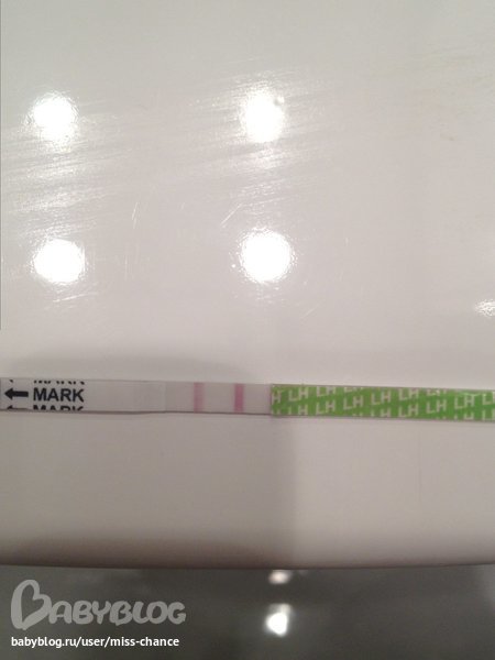на фото 17 ДЦ, О пришла на следующий день, что показал следующий тест, который я сделала вечером этого дня.А если полоска только начала появляться - это значит, что концентрация ЛГ растет )) и скоро будет О. Но тест считается положительным, если тестовая не отличается по цвету от контрольной или даже ярче нее.