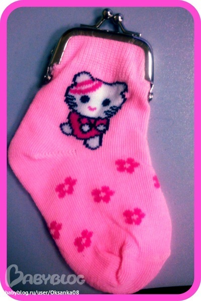 вот такой носочек детский (кошелечек) и причем имеено розовенький