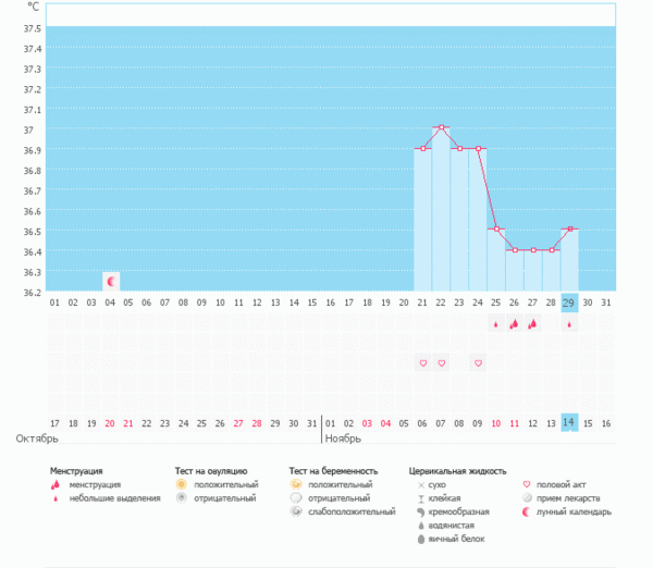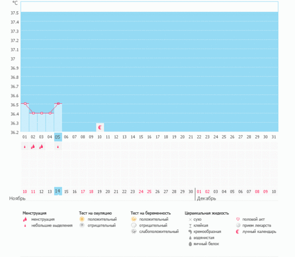 ну ничего нельзя сказать ещё) график неинформативен) График нужно начинать строить с первого дня М... и уже когда будет что-то вырисовываться... а здесь виден только спад перед М и начало нового цикла!