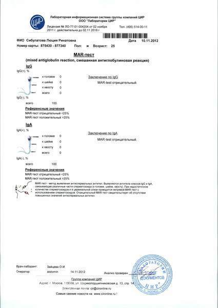 Сдали мы тест на совместимость (перекрестная проба Курцрока-Миллера), пришли сегодня результаты, не могу разобраться. Думала будет указано, сколько живых спермиков было до соединения с моей слизью и сколько после. А пришли какие-то не понятные мне результаты. Это вообще то, что мы сдавали?? Такое ощущение, что это Мар-тест к спермограмме мужа (ее мы тоже сдали заодно, но не расширенную, а обычную).