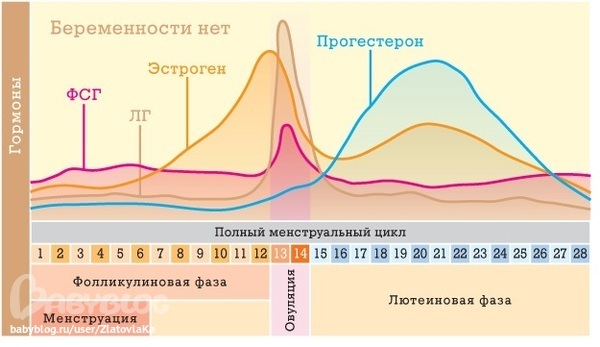 Дни 1,2,3Гормоны: медленно начинает расти ФСГ (2,45-9,47 мЕд/мл), ЛГ остается примерно на своем нижнем уровне (1,84-26,97 мЕд/мл), эстрадиол – падает от первого дня до своего низшего уровня (68-1269 пмоль/л), прогестерон - низкий (0,32-2,23 пмоль/л) Фолликулы: ничего не происходит.Выделения: жидкая красная кровь, ощущения скользкие и мокрые.БТ: 36,3-36,5 (орально), 36,4-36,6 (вагинально и ректально).Шейка матки: приоткрыта, средней мягкости, слизистая пробка выходит с кровью ПА: подождать во время сильного кровотечения.Дни 4,5 Гормоны: ФСГ продолжает расти (2,45-9,47 мЕд/мл), ЛГ – тот же уровень (1,84-26,97 мЕд/мл), эстрадиол – низко (68-1269 пмоль/л) Фолликулы: ничего не происходит Эндометрий: 3-4ммВыделения: кровомазание, слизи нету, шеечных выделений почти нету, ощущения сухие БТ: 36,3-36,5 (орально), 36,4-36,6 (вагинально и ректально) Шейка матки: закрывается, удлиняется, формируется слизистая пробка ПА: бесплодные дни (можно не предохраняться, если не планировать ребенка)Дни 6,7,8 Гормоны: ФСГ достигает уровня первого порога (который запускает фазу созревания тех фолликулов, которые на него запрограммированы) (2,45-9,47 мЕд/мл), ЛГ – постоянный (1,84-26,97 мЕд/мл), эстрадиол – начинает медленно расти (как только фолликулы начали расти, яичники медленно усиливают его выработку) (68-1269 пмоль/л)Фолликулы: начинают созревать те, которые лучше всего кровоснабжаются и запрограммированы на этот первый порог ФСГ – достигают размера 2-6мм в диаметре Эндометрий: 4-6мм Выделения: достаточно сухо, выделения кремообразные или липкие, если естьБТ: 36,3-36,5 (орально), 36,4-36,6 (вагинально и ректально) Шейка матки: закрыта, твердая, слизистая пробка сформирована ПА: бесплодные дни Дни 9,10Гормоны: ФСГ продолжает расти (2,45-9,47 мЕд/мл), ЛГ – постоянный (1,84-26,97 мЕд/мл), эстрадиол – растет, вырабатываемый активными яичниками (131-1655 пмоль/л)Фолликулы: активно растут – доминантные размером 12-15мм Эндометрий: 5-10мм Выделения: становиться влажно, появляется первая жидковатая слизьБТ: 36,3-36,5 (орально), 36,4-36,6 (вагинально и ректально)Шейка матки: становиться мягче, начинает вырабатывать жидкую слизь ПА: относительно плодные дни (предохранение необходимо, если не планировать ребенка) Дни 11,12,13 Гормоны: ФСГ растет (2,67-15,67 мЕд/мл), достигает второго порога, ЛГ – быстро растет, спровоцированный эстрадиолом, эстрадиол – продолжает расти (131-1655 пмоль/л) Фолликулы: те (1-2шт), которые вырабатывают максимум эстрадиола, а значит являются самыми крупными (около 15мм), достигая второго порога вступают в овуляторную фазу, остальные, мелкие, атрезируются Эндометрий: 7-14мм Выделения: жидкая, очень тягучая слизь, ощущения мокрыеБТ: возможно снижение на 0,1-0,2 градуса, часто температура остается стабильнойШейка матки: мягкая, открытая, слизистая пробка вытекает, полностью открывая проход ПА: плодные дни (активная половая жизнь, если планировать ребенка)Дни 14,15: Гормоны: ФСГ спадает (0,01-6,4 мЕд/мл), ЛГ достигает своего пика (за 36 часов максимум с момента начала его усиленной выработки) (19,61-114,93 мЕд/мл), эстрадиол растет, прогестерон медленно растет (0,48-9,41 пмоль/л)Фолликулы: доминантный фолликул (-ы) , достигая определенного размера (18-25мм) и вырабатывая определенное кол-во эстрадиола, становятся чувствительны к ЛГ. Через 12 часов после того, как ЛГ достигнет максимума происходит разрыв фолликула – овуляция. Эндометрий: 10-16мм Выделения: обильные, тягучие, мокрые БТ: вырастает на 0,3-0,4