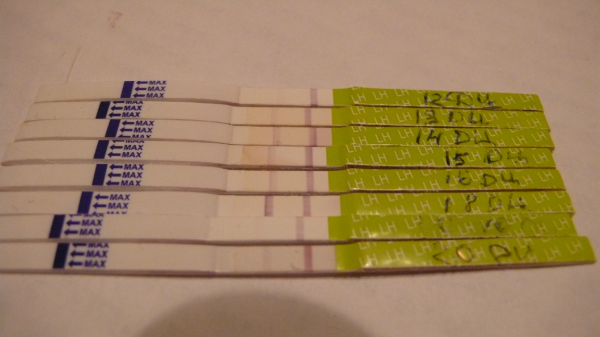 Овуляция( тесты на овуляцию)Девочки, гляньте, пож, когда была О. Понимаю, что сейчас все скажут, что на 18 ДЦ самый яркий (вторая ярче первой), но на 17 ДЦ я не делала тест, так как по ощущениям решила, что О прошла, а на 18 ДЦ сделала, а там 2 жирнючие, вечером был ПА, а до 3.5 дня назад, вот теперь маюсь, когда была О на сам 18 ДЦ или на 19 ДЦ? Могут ли тесты показывать 2 жирные в день О или они в день О уже светлые, а только накануне жирные?.........