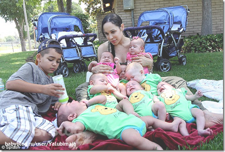 Не понимаю,почему эти фотки идут всегда вместе?На нижнем фото американка,родившая 8 детей,после эко.Детки уже подросшие,про них снимали реалити шоу.А на верхнем фото 11 детей другой женщины.