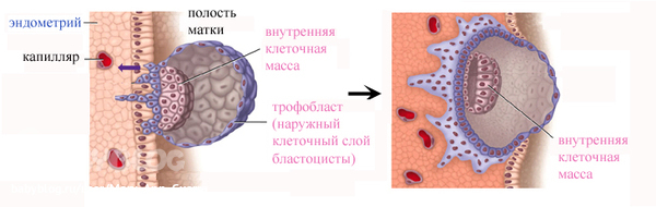 К имплантации способен только эмбрион, находящийся на стадии бластоцисты. Бластоциста состоит из двух типов клеток: