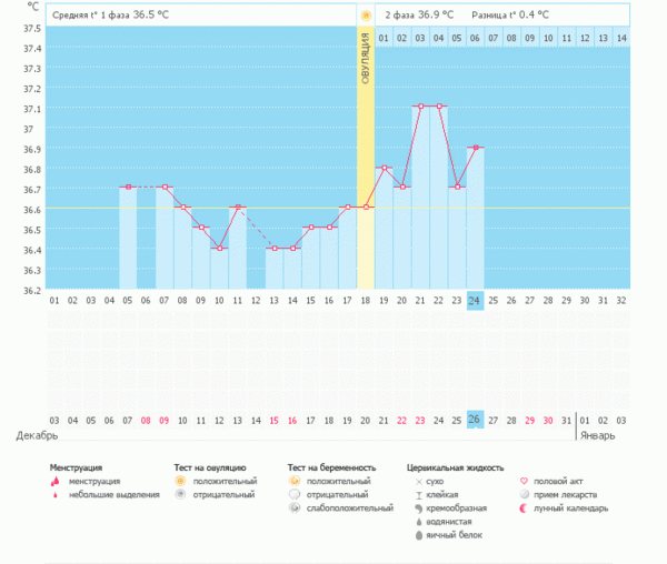 Базальная температура, ТТ, графики БТДевчули,посмотрите мой странный график.На 13 ДЦ тест на О показал две ярких полосочки,но по БТ и не скажешь,что О была на 14 или 15 ДЦ.График выдал мне вот такую О.Вобще цикл у меня 28-29 д.И еще,девочки,просвятите меня.Если БТ поднимается,то значит точно была О?Как же хочется подарочек к НГ