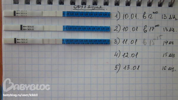 Если цикл постоянный то делите его по полам(28/2=14),т.е. с 14 дня начинаете делать тесты,если нет,то берете его среднее значение и с этого дня делаете тесты,утром не делайте(лучше во второй половине дня).Замачиваете тест,держите секунд 15-20 потом ждете 10 мин. И смотрите если первая полосочка как контрольная или даже ярче,то О будет через 24-48 часов.