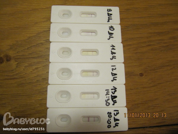 Овуляция( тесты на овуляцию)Привет девочки!!! Если честно - не совсем понятно! На всякий случай начала делать О тесты с 9ДЦ, вторая полосочка была бледная, но поярче, чем последующие дни, аж до сегодняшнего вечера. Днем в 14:30 (как и написано в тестах - делала по возможности в одно и тоже время) была слабая вторая. Решила сделать вечером ещё один раз (посмотрела, что другие делают в день предполагаемых О два раза - утром/днем и вечером, и решила тоже два раза сделать) - вторая наиярчайшая!!! Никаких других признаков нет - только грудь чуть чуть налилась. Сделала ещё тест по слюне - нету О! Живот уже добрую неделю тянет, так что по нему не сориентируешься! БТ пока низкая. Конечно - завтра тоже тест на О сделаю, может она у меня не один день будет, а больше! ))) И, конечно же, сегодня и далее ПА с долгой березкой!!!!! Пожелайте мне удачи! И беременяшки - чихайте на меня позаразнее, пожалуйста!!! Спасибо всем!