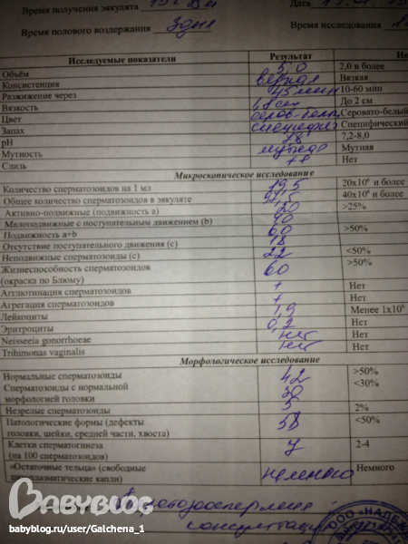 АнализыНЕ успев начаться оно приостанавливается скорее всего((((( Предлжила моя Г подсадку , говорит что тут 50-50 что самостоятельно у нас получится,тк спермики малоподвижны и 60% с дефектом,те 40% что те ленивые спермики добегут,а ведь может и с дефектом добежать и тогда Б будет проблемная*(((((ё маё!!!! ЗАвтра муж идет к врачу...у кого так было? долго лечили? а вообще вылечили ли? Вот наша СГ опять выкладываю