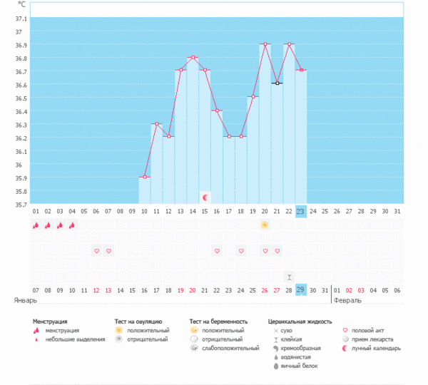 на 20 ДЦ тест на овуляцию был положительный??? Этот тест меня и ввел в недоумение, поэтому я и подумала что может было две овуляции, т.к БТ поднималась два раза. А обычно по времени сколько у Вас цикл длится?