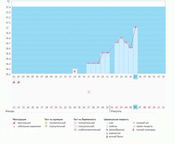 Базальная температура, ТТ, графики БТДевочки здравствуйте.Бт вообще не хотела мерять в этом цикле.но потом как то по привычке рука потянулась к градуснику)))поэтому БТ у меня не с начала цикла.Цикл у меня от 32-35дней.О отслеживала только по БТ по ощущениям и по графику я подумала что она была 21-22ДЦ(в принципе как и всегда у меня такое бывает).Обычно у меня 1фаза бт от 36.3 до 36.5.а 2 фаза от 36.7 до 36.9.редко когда поднимается до 37,и то если подымается то только с 36.9 на 1градус.а тут аж на 4 поднялась.еслиб я не знала то подумала что О но ведь по ощущениям она уже была.сейчас нечего не болит и не тянет(правда поисницу иногда,и на вечер щеки очень горят.и ТТ 36.9)и выделений вообще ни каких.что за диво))))