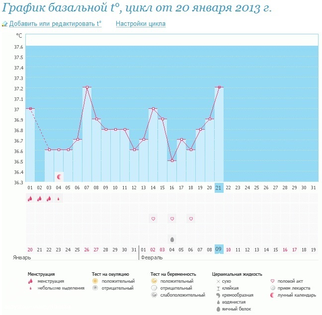 у меня в дневнике есть примеры графиков.когда бт скачет вот так это признак ановуляторного цикла.если бует большая задержка то возможно О придет и на 50 дц.(у меня так было)у вас график как забор.и разница большая.что бы прога нарисовала О нужно что бы бт держалась на одном уровне дня три-четыре и более.она не должнападать ниже средней линии.(т.е. средней температуры цикла.ну или последнего западания).меряйте еще.всякое может быть.мой нынешний примерно такой же