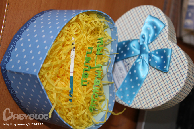 Поздравляю! Какая же вы терпеливая! Я поначалу тоже хотела сделать открытку и туда вклеить положительный тест,но не удержалась и рассказала мужу как только он домой пришел с работы