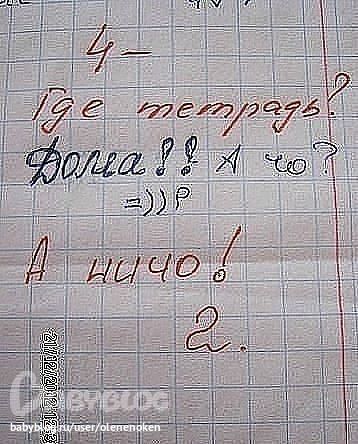 Мне нравится, что ученики в этих вот дневниках и тетрадках некоторые пытаются типа повыпендриваться, а учителя им в той же "понятной" манере с юмором и отвечают!