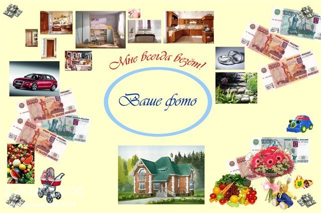 Да нет,Надюш,эт так кажется,главное для этого созреть и сделается на одном дыхании!!!Фотка-обязательно недавняя и там,где Вы счастливы.И можно не все сразу зоны заполнять,а по мере появления Мечт в голове.Посмотрите в поиске "Карта желаний",там много выскочит вариантов,можно выбрать,какой по душе))))