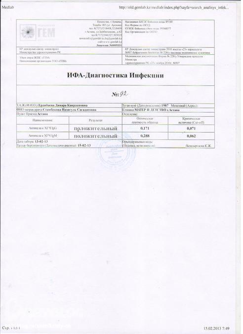 АТ к ХГЧ - G положительно 0,171 (норма 0,071)