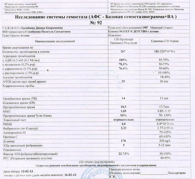 Антитела к фосфолипидам отриц., а вот со свертываемостью я не могу разобраться