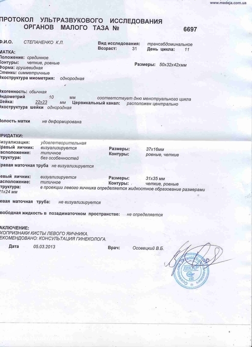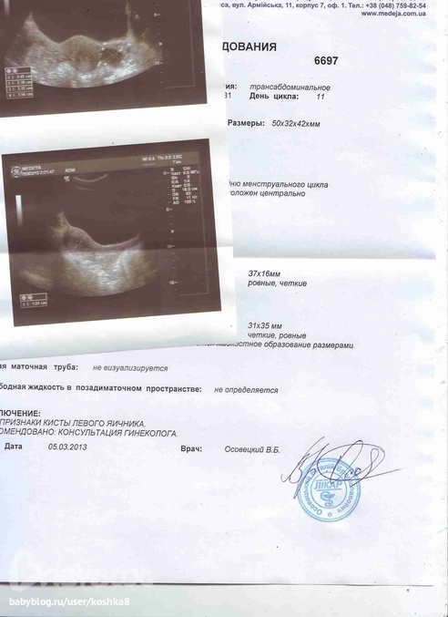ФолликулометрияДевулечки у меня к вам вопросик, просто впервые с этим столкнулась. В общем, пошла на УЗИ сегодня, чтоб отследить овуляцию и эндик. Так вот есть радостная новость эндик хороший 10мм на 10 д. ц, это отлично так как раньше он был 8мм и то на 14-15 д. ц- вывод ананасы работают) Но сказал что есть подозрение на кисту в левом яичнике, у меня это впервые. Про фолики вообще ничего в УЗИ не написано. Мне интересно девочки при кисте есть овуляция и фолликулы или нет. Просто УЗИСТ ничего не сказал, сказал, спрашивайте у своего Г. А мне на приём только 10 марта (мой врач на конференции).