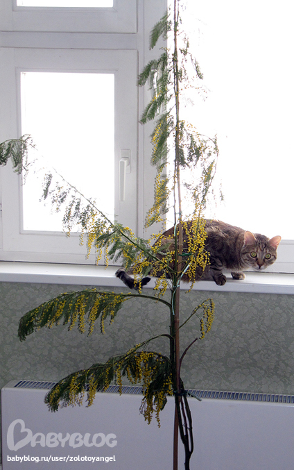 Лягухи, аисты, чихи, приметыДевуленьки, муж принёс вместо букета мимозы , целое дерево ))) Мася его уже облюбовала