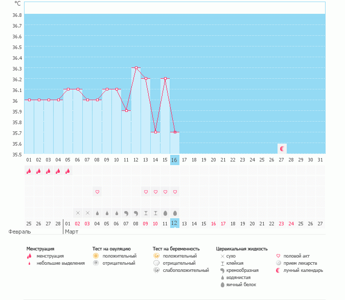 Привет! посмотри у меня мой график от 26 февраля, по графику даже намека нет на овуляцию! сходила на узи на 14 ДЦ, мне сказали, что она была 2 дня назад