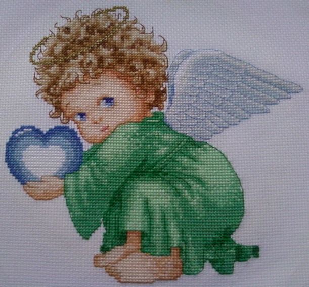 Моему удивлению не было предела......когда я закончила его вышивать, то следюущим утром у меня пошли М!!!!!!!!!!!!!!!!!!!!!!!!!! может это совпадение, но я верю, что мой ангелочек мне помог и я приступила к лечению.....а он был уже с нами!!!! Вот мой ангелочек!!