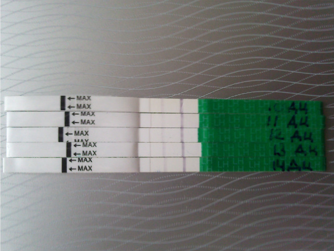 Овуляция( тесты на овуляцию)Цикл обычно 29-30 дней был. Хотя прошлый всего 25 дней из-за стресса, как я полагаю. Всегда на 14ый ДЦ мне тесты на О показывали жирные полоски. А сегодня 14ый день, а овуляцией и не пахнет!!! Как так?!?? На 10 ДЦ была даже ярче чуток, чем на 11ый. Потом на 13ый как на 10ый ДЦ стала. А сегодня на 14ый даже слабее вчерашней