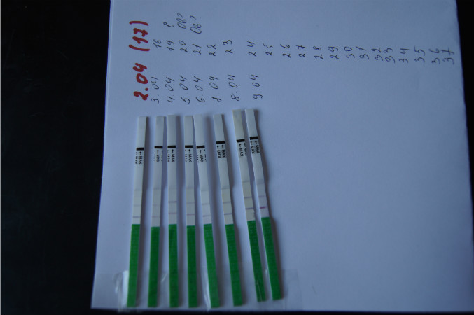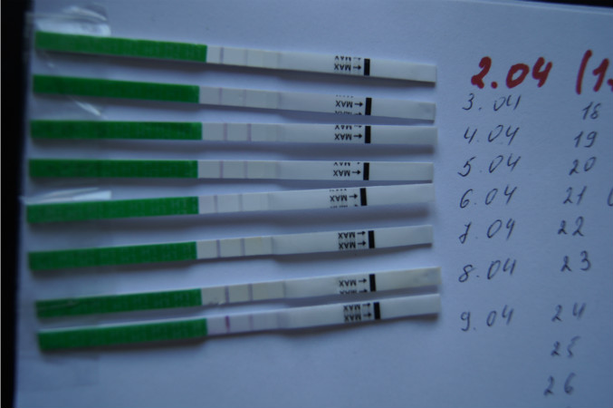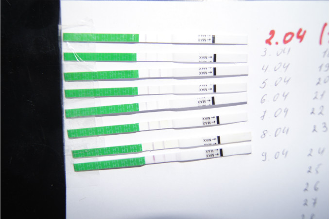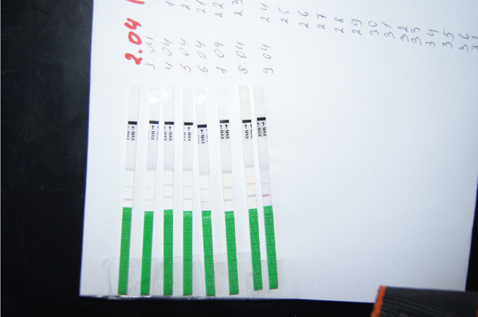 Овуляция( тесты на овуляцию) Дорогие Девочки, ТЕ КТО В ЭТОМ РАЗБИРАЕТСЯ, помогите пожалуйста разобраться.... под катом фото тестов.... как думаете - когда была О?