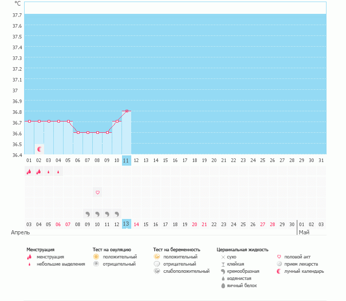 Базальная температура, ТТ, графики БТпервая фаза в этом цикле