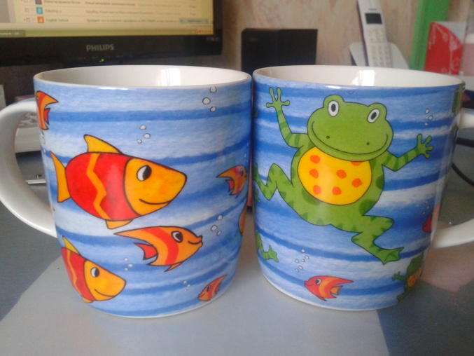 Причем так интересно, я редко бываю именно в этом магазине, но если захожу-то прямяком к отделу с чашками-периодически прикупаю именно такой формы, чтобы набор получался, рисунки постоянно обновляются. а тут - подхожу, а там супер разнообразие именно на "водяную" тему. вот и выбрала себе самые симпатичные.)