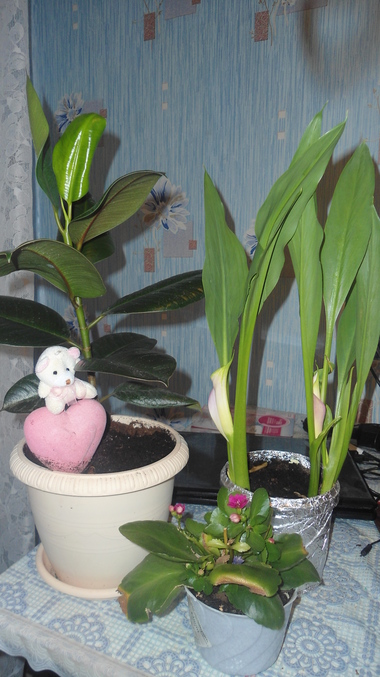 фикус красавец))))) а каллы вообще прекрастны))))и эти маленькие розовые цветочки прям душу греют