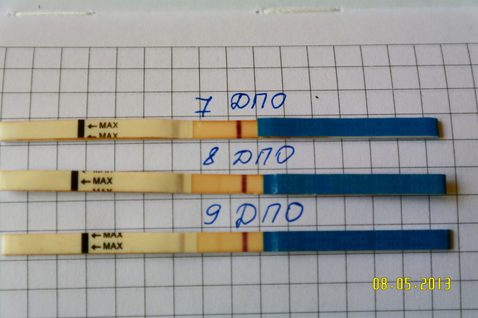 мне кажется что 7 дпо еще не было имплантации а 8 уже появиля хгч вот и тестики начили ярчать