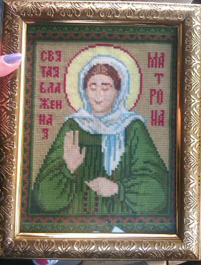 Лягухи, аисты, чихи, приметыВот закончила вышивать матрону и св.Валерию! Теперь отвлекусь и не буду вышивать иконы, буду вышивать фотографии! Нашла программу для рассчета картинки по клеточкам, и уже приступила вышивать фото сестры с мужем к дню их годовщины, думаю подарок будет самый лучший и необычный:-)