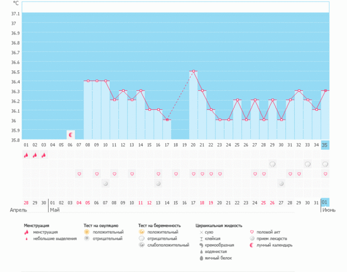 Ух...а в среднем сколько дней у тебя???я тоже с сегодняшнего дня начала график...Первый раз решила полноценный график вести...Сегодня 2 ДЦ температура 36,6....посмотрю,что будет дальше....