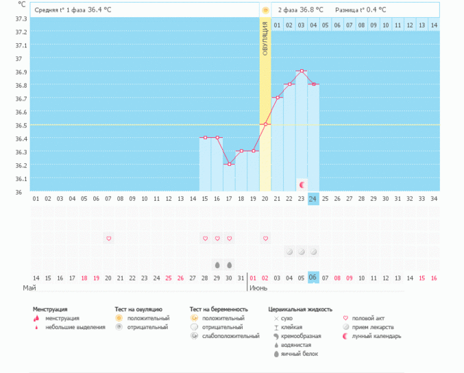 У вас хорошая разница между фазами. И возможно, данная т. во второй фазе, для вас норма. Из моего опыта, когда т в первой фазе 36.4 в основном, то во второй фазе 37 держалось постоянно. А вот было время, что т была в 1 фазе 36.6–36.7, то тогда т во 2 фазе была всегда выше 37.