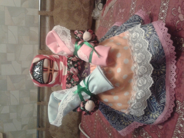 Лягухи, аисты, чихи, приметыВот такую Обережку я сшила вчера вечером для себя. Надеюсь наше с мужем желание сбудется.