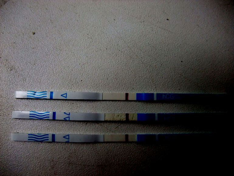 Ждем дня Х (Признаки беременности / Тесты)Сегодня 4 день задержки. Сфоткала тесты. Полосочки пока неяркие, фотик не ловит их, поэтому затемняю. Первая фотка - тест на 16 ДПО. Вторая фотка: верхний - на 13 ДПО(за день до задержки), второй - на 15 ДПО (2 ДЗ), нижний - на 16 ДПО (3 ДЗ). В жизни на нижнем полоска ярче, чем на втором, к тому же второй помятый "слегка")).