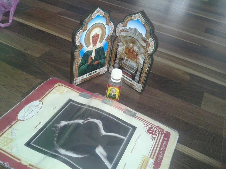 Религия и планированиеХочу поблагодарить одну очень отзывчивую и добрую девушку - Елену. Прочитав очередной мой плаксивый пост, о том что я никак не могу зачать своего бейбика, она решила мне помочь. Я очень давно хочу поехать к Матроне, купить там иконку и маселко, но все никак у меня не получается. И вот Ленуся решила сделать мне подарочек. Я признаться до конца не верила, что она мне его отправит. Сегодня я получила посылочку, дрожащими руками открыть не получилось, поэтому грызла. ( просьба ко всем кому религия и все,что с ней связано побоку, не ходить под как и не портить мне настроение)