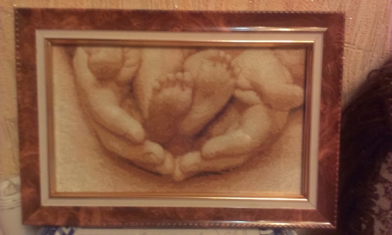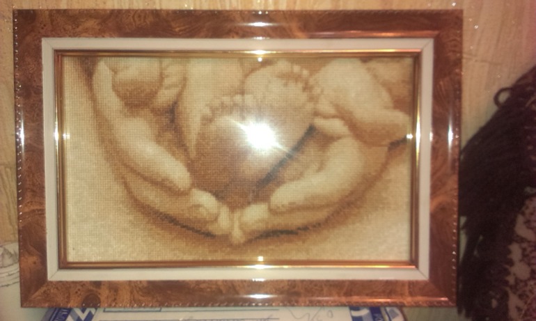 Лягухи, аисты, чихи, приметыЗагадала себе что это будет мой талисман. Вышила год назад и только что оформила, надеюсь сработает