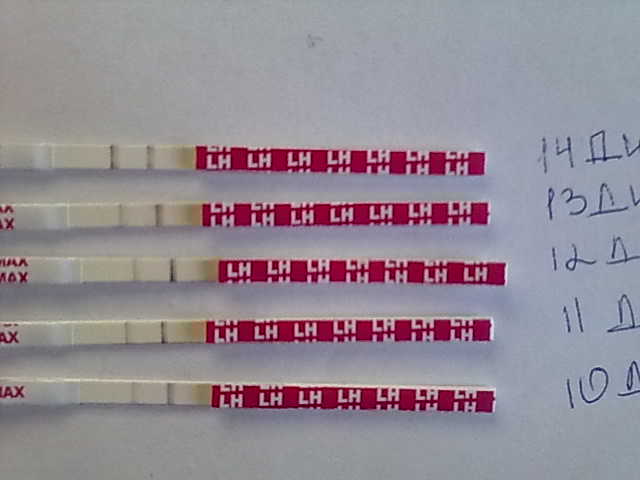 теперь надо делать тест 2 раза в день ( первая и вторая половина дня). У меня на 13 ДЦ вторая полоска еле проявилась, в первой половине дня 14 ДЦ-то же самое, а во второй-резко стала ярче контрольной.