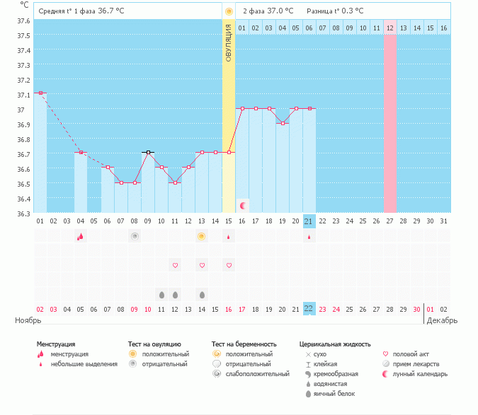 Мне тоже кажется, что это не М, если О точно была 16.11, то до М еще оччч далеко, вторая фаза не меняется и всегда примерно 14 дней. Это скорее всего имплантация!! Сейчас главное не волноваться, побольше отдыхать.... Удачи!!!!
