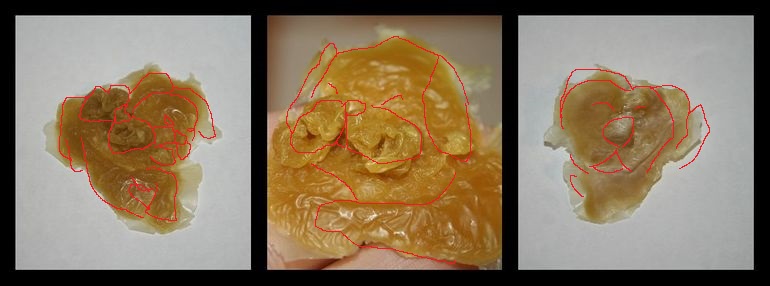 на первом вижу прям четко маленький эмбриончик или человечек, сидит, ножки поджал, головку наклонил к груди.