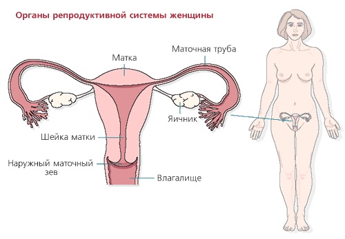 Прямо над лобковой костью маточка, и по правую и по левую сторону от нее яичники с трубами!