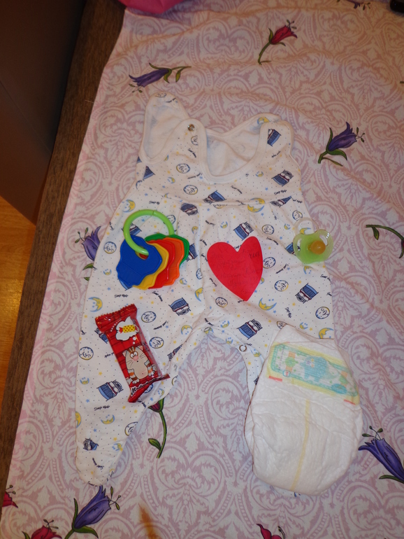 Я весь день проходила в приподнятом настроении,а улыбка просто не сходила с лица.Игрушечки-погремушечки,соска...,а уж распашеночку я просто затеребила,пол дня из рук не выпускала.Я загадала,если получу в этом месяце,то всё у нас получится!И,о чудо,не прошло и недели,а я уже держу в руках свои талисманчики!Значит скоро мы дождёмся свои //! Наша малышка будет с нами!!!