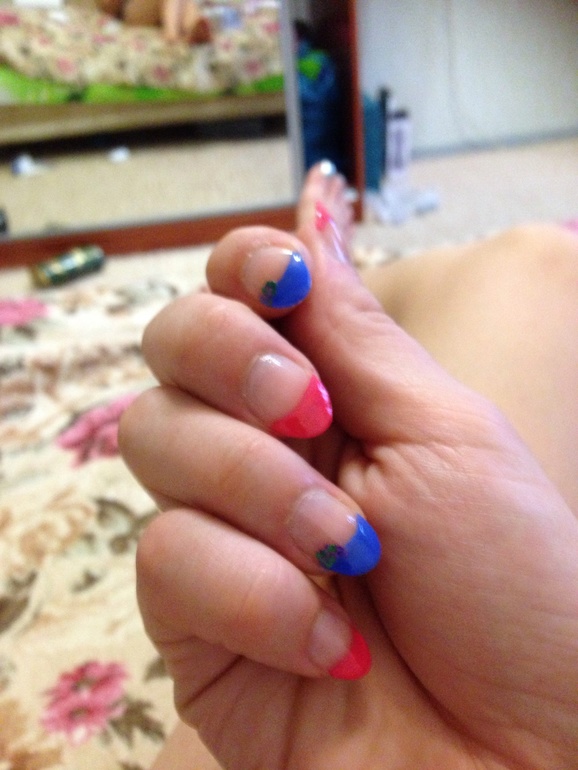 А еще красиво было бы, если бы все пальцы розовые, а 2 средних синим цветом=)))
