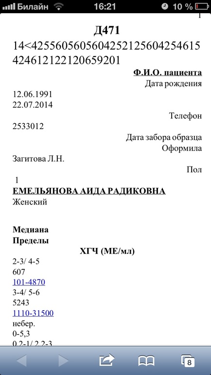 Действительно,вы правильный анализ сдали?вообщето надо сдавать бетаХГЧ,а вы сдали общий,я не утверждаю точно,но помоему это разные вещи,узнайте поточнее,чтоб быть уверенной и удачи вам.