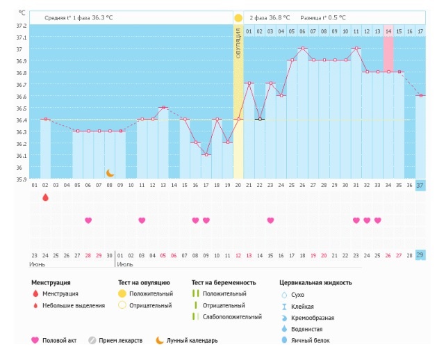 Ну я считала по упавшей БТ и средней длине второй фазы — 14 дней.))) Да и 17 БТ уже выше средней температуры 1 фазы. Я думаю на 14 и к ночи М придут.