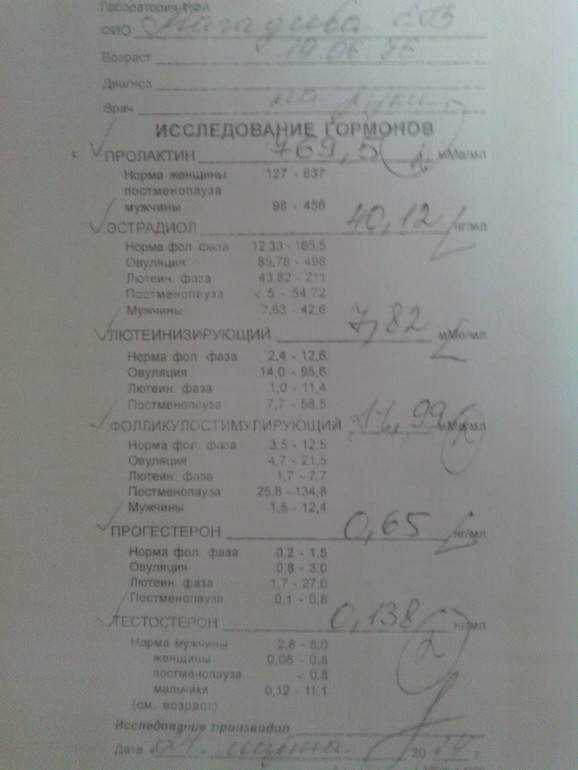 лапара была. Эта целая история с врачом( Я в длительной командировке в чужом городе уже 9 месяцев, после лапары прошел год, Б не наступила, думаю пойду проверюсь на гормоны. Нашла клинику и вот результаты((( Опять поменять врача, в этом городе их валом))))